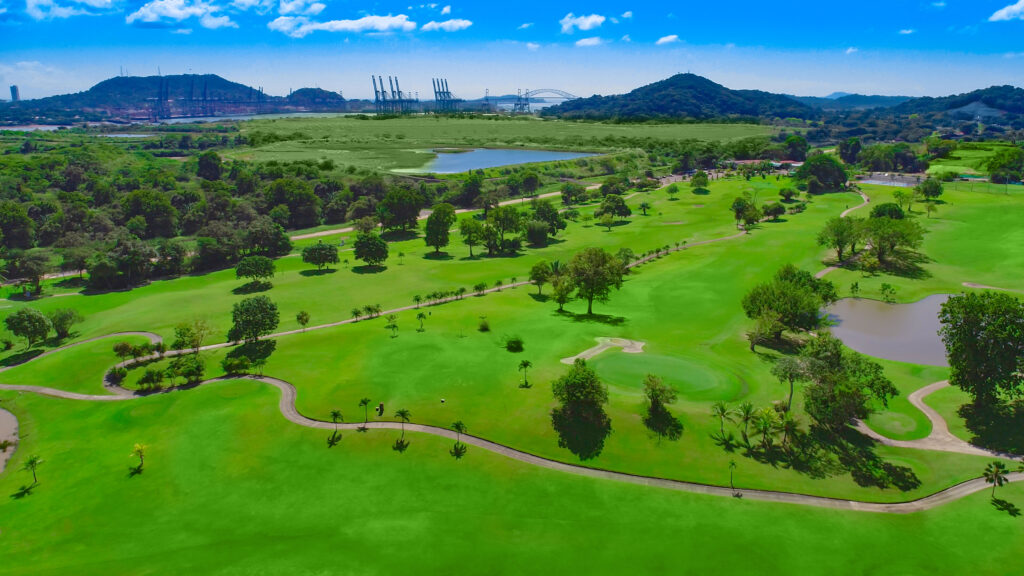 La cancha cuenta con 18 hoyos, par 72, extendidos en 6,618 yardas, y fue concebida para armonizar con la fauna y flora de la zona. Nueve hoyos bordean la Reserva Forestal de Panamá y los otros nueve ofrecen vistas panorámicas al Canal y la ciudad.