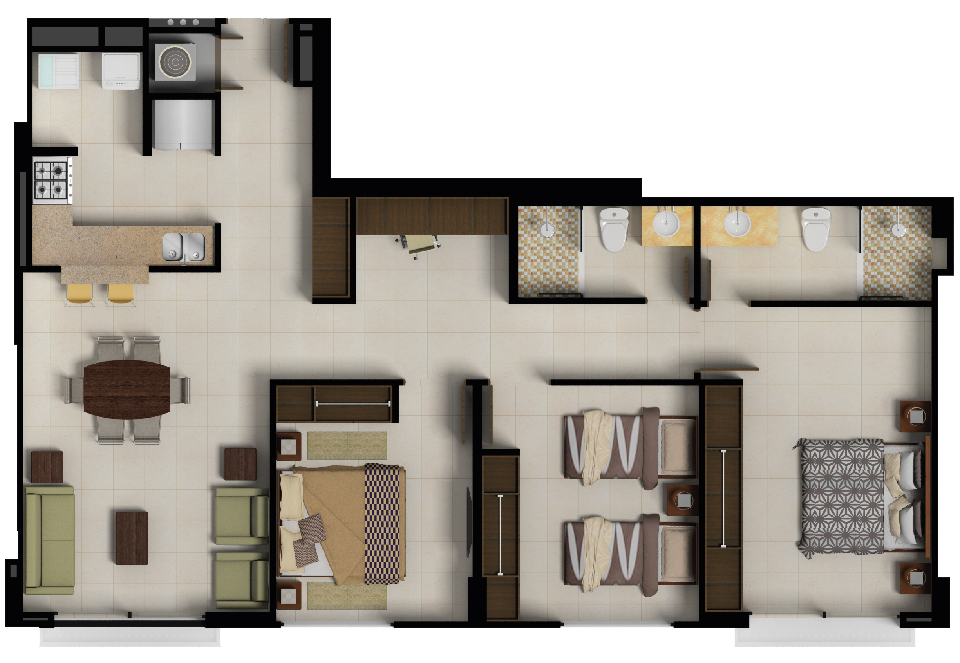This beautiful project gives you the opportunity to live surrounded by green areas and with all the facilities just a few steps from your home.