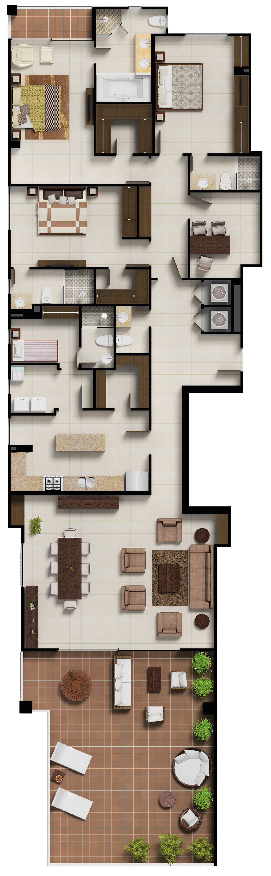 orest Towers is a set of two 7-story buildings strategically located at the highest point of Cocolí, offering its owners incomparable views of the Panama Canal, the City and the forest reserve. Located within the exclusive Tucán Country Club residential complex, the only private community with a fenced-in security perimeter, developed in a Mediterranean style and inspired by nature. Its modern and cozy apartments are characterized by high-end European finishes and great use of space, with footage ranging from 70 to 132 m2 and a 303 m2 penthouse. In addition to this they offer a functional distribution that adjusts to every need, with incredible light and a mix of design between modern and Mediterranean.